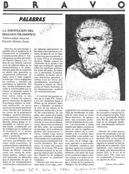 Autores chilenos - Gómez Lasa, Gastón - Institución del diálogo filosófico