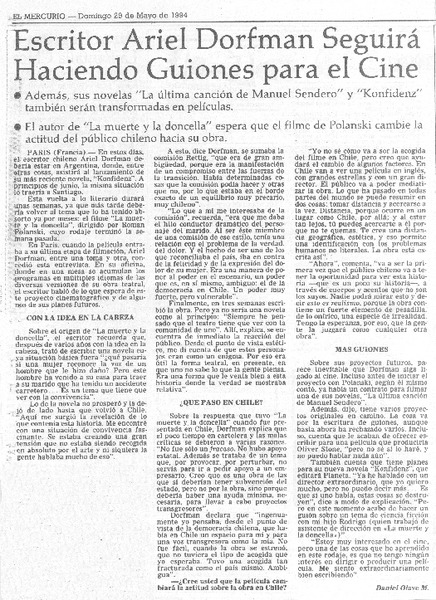 Escritor Ariel Dorfman seguirá haciendo guiones para el cine [artículo] Daniel Olave M.