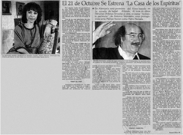 El 21 de octubre se estrena "La casa de los espíritus" [artículo] Daniel Olave M.