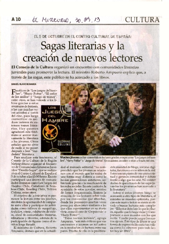 Sagas literarias y la creación de nuevos lectores [artículo] Daniel Olave Miranda