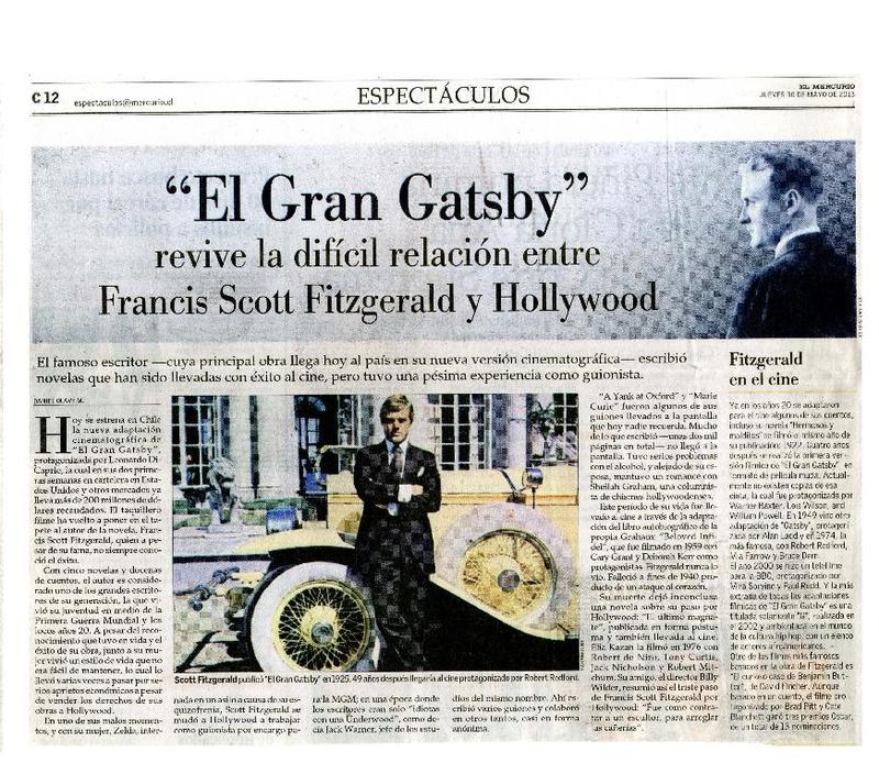 "El gran Gatsby" : revive la difícil relación entre Francis Scott Fitzgerald y Hollywood [artículo] Daniel Olave M.