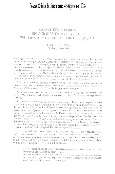 Cervantes y Borges; relaciones intertextuales en "Pierre Menard, autor del Quijote" [artículo] Carmen R. Rabell.