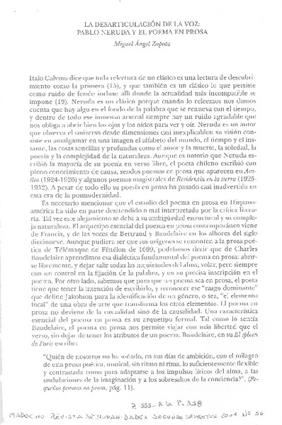 La Desarticulación de la voz: Pablo Neruda y el poema en prosa [artículo]Miguel Angel Zapata.