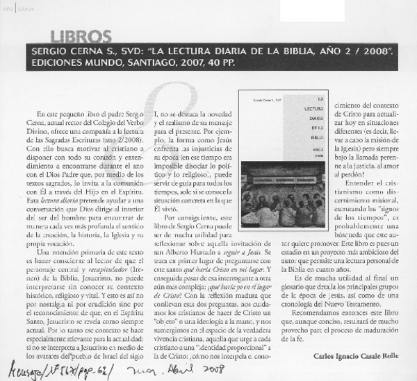 La lectura diaria de la biblioa [artículo] Carlos Ignacio Casale Rolle.