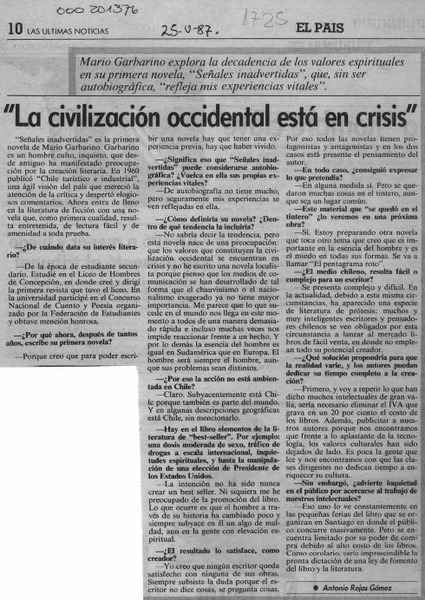 La civilización occidental está en crisis [artículo] Antonio Rojas Gómez.