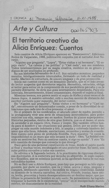 El territorio creativo de Alicia Enríquez, cuentos [artículo] Ruth Eliana Merino.