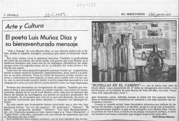 El poeta Luis Muñoz Díaz y su bienaventurado mensaje [artículo] Ruth Eliana Merino.