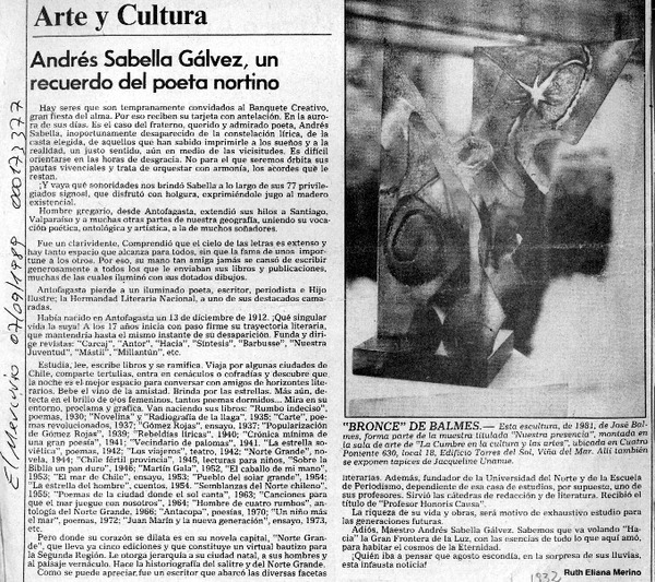 Andrés Sabella Gálvez, un recuerdo del poeta nortino [artículo] Ruth Eliana Merino.