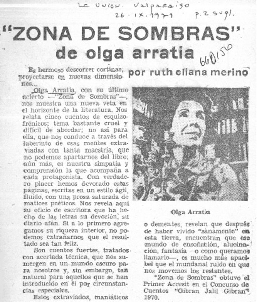 Autores chilenos - Arratia, Olga - Zona de sombras