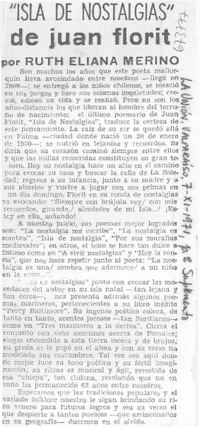Isla de nostalgias" de Juan Florit, [artículo] Ruth Eliana Merino.
