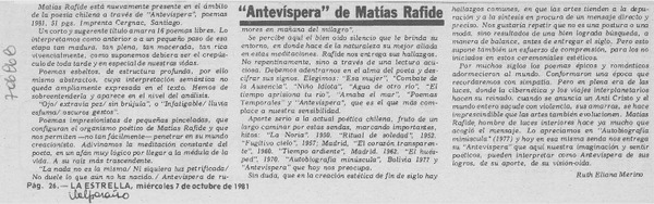 "Antevíspera" de Matías Rafide [artículo] Ruth Eliana Merino.