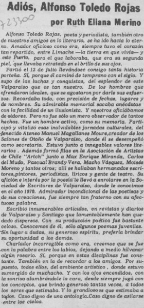 Adiós, Alfonso Toledo Rojas [artículo] Ruth Eliana Merino.