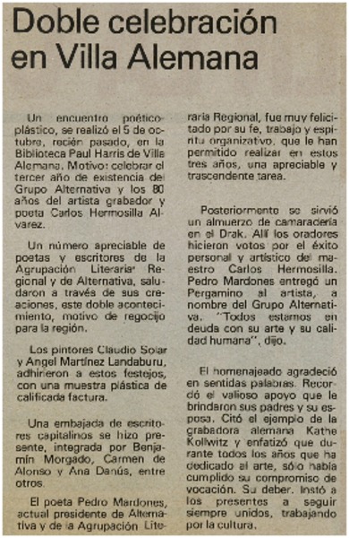 Doble celebración en Villa Alemana [artículo] Ruth Eliana Merino.