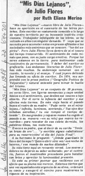 "Mis días lejanos" de Julio Flores [artículo] Ruth Eliana Merino.