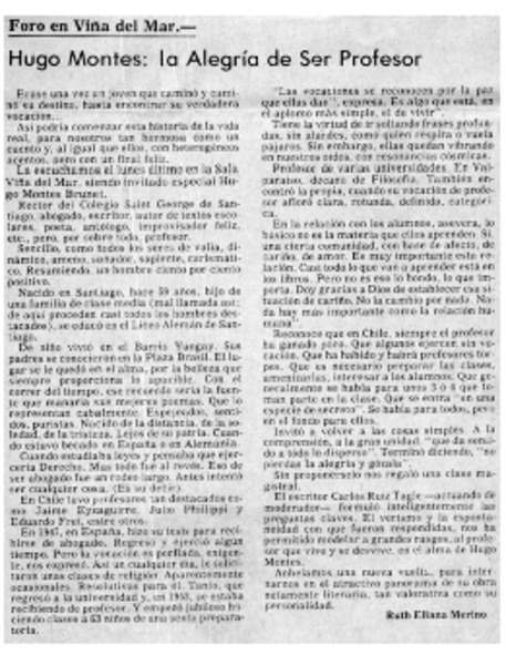 Hugo Montes: la alegría de ser profesor [artículo] Ruth Eliana Merino.