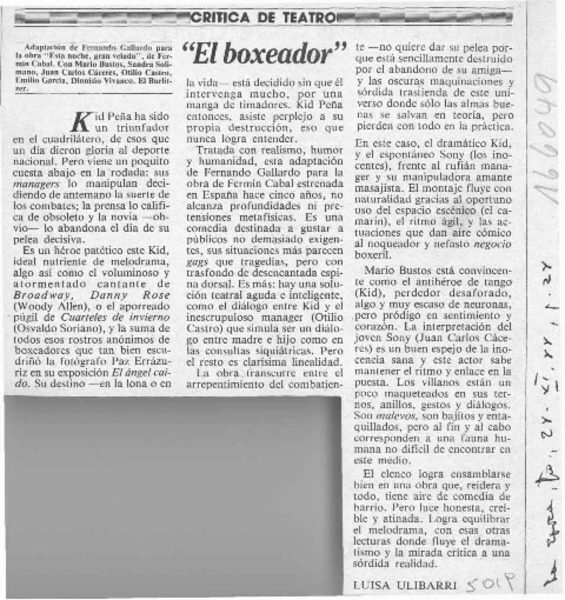 Óscar Castro en sala La Comedia [artículo] Luisa Ulibarri.