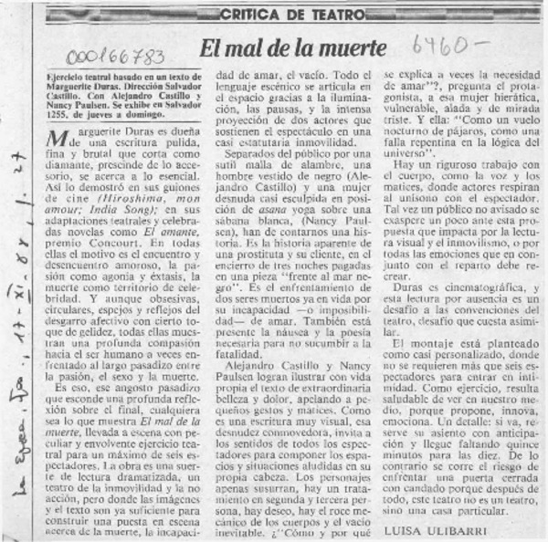 El Mal de la muerte [artículo] Luisa Ulibarri.