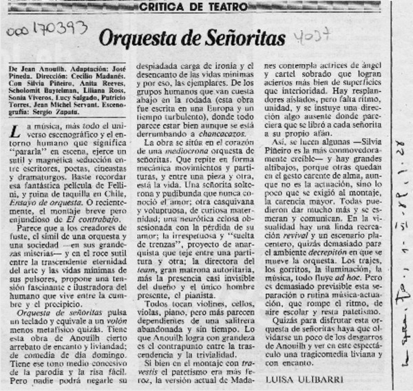 Autores chilenos - Autores franceses - Pineda, José - ANOUILH, JEAN - ORQUESTA DE SEÑORITAS