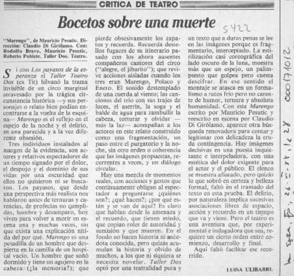 Bocetos sobre una muerte [artículo] Luisa Ulibarri.