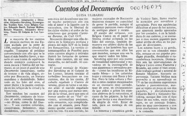 Cuentos del Decamerón [artículo] Luisa Ulibarri.