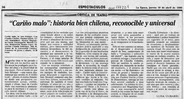 "Cariño malo", historia bien chilena, reconocible y universal [artículo] Luisa Ulibarri.