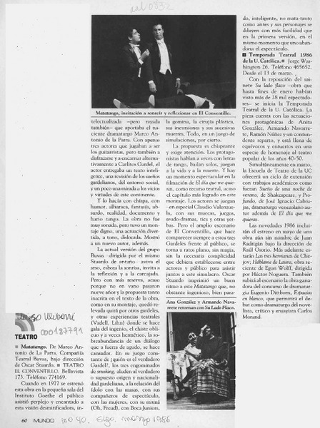 Autores chilenos - Parra, Marco Antonio de la - Matatangos y la resemantización de su causa ausente