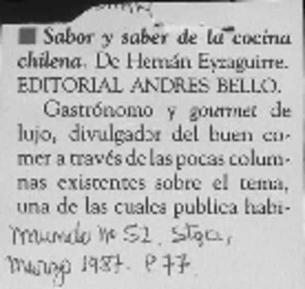 "Sabor y saber de la cocina chilena" [artículo] Luisa Ulibarri.