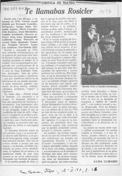 Rivano, Luis - TE LLAMABAS ROSICLER