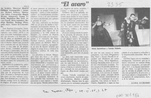 Autores chilenos - Griffero S., Ramón - Autores franceses - MOLIERE - AVARO, EL