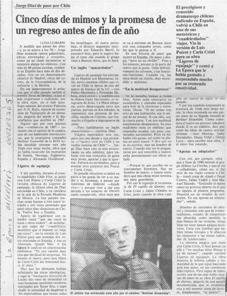 "Ligeros de equipaje" [artículo] Luisa Ulibarri.