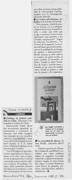 Señorita Sobreviviente, la - MEBOLD K., LUIS - Nordenflycht Bresky, Adolfo de - CATALOGO DE PINTURA COLONIAL EN CHILE