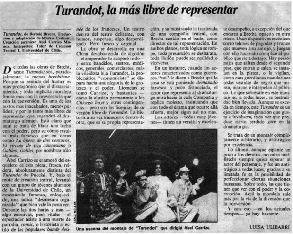 Turandot, la más libre de representar [artículo] Luisa Ulibarri.