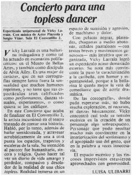 Concierto para una topless dancer [artículo] Luisa Ulibarri.