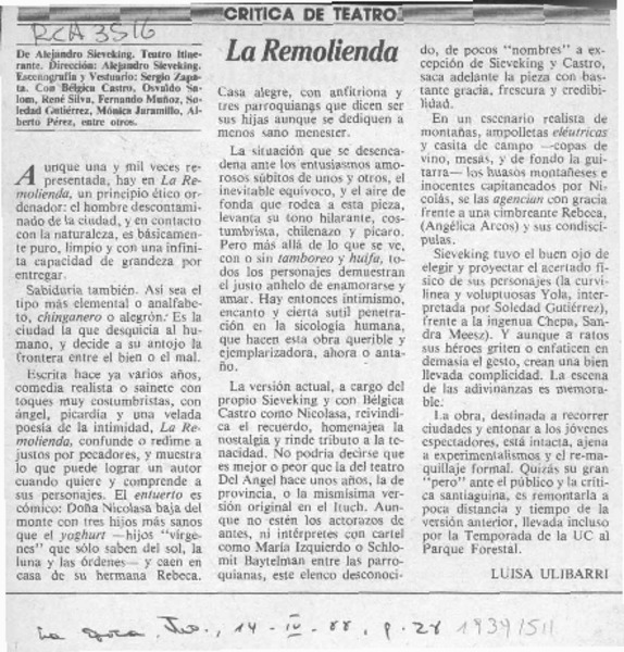 SIEVEKING, ALEJANDRO - REMOLIENDA, LA