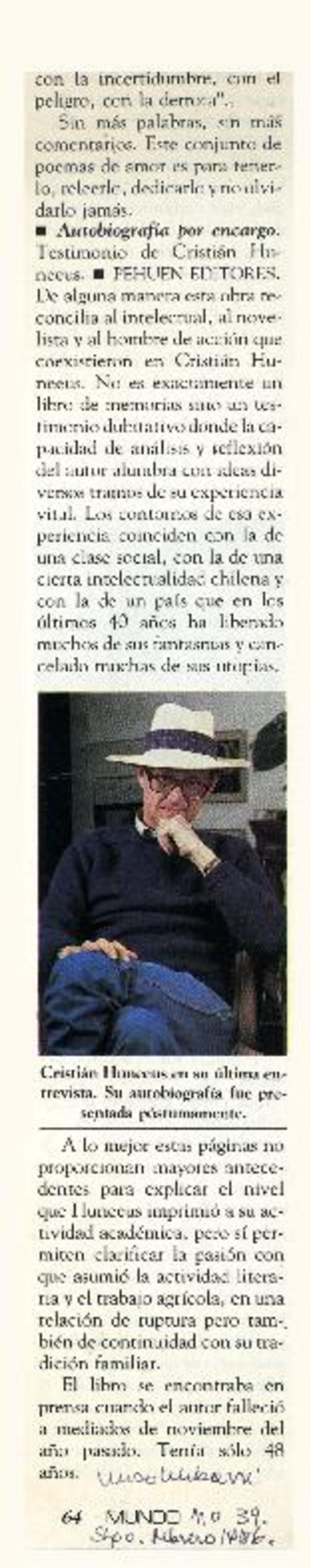 HUNEEUS, CRISTIAN - AUTOBIOGRAFIA POR ENCARGO