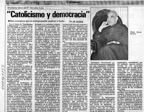 "Catolicismo y democracia" [artículo] J. M. Lecaros.