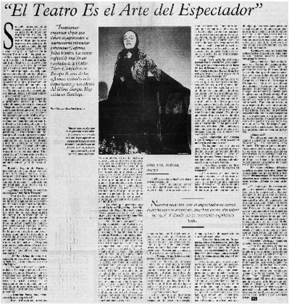 "El Teatro es el Arte del Espectador" [artículo] Cecilia Valdés Urrutia.