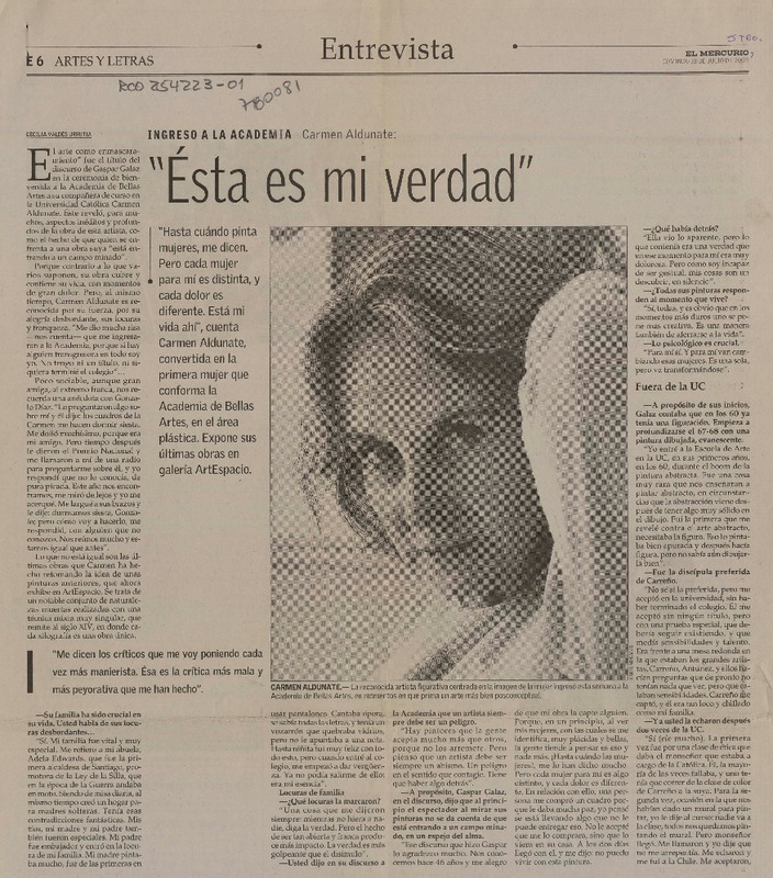 Ésta es mi verdada" [artículo] Cecilia Valdés Urrutia.