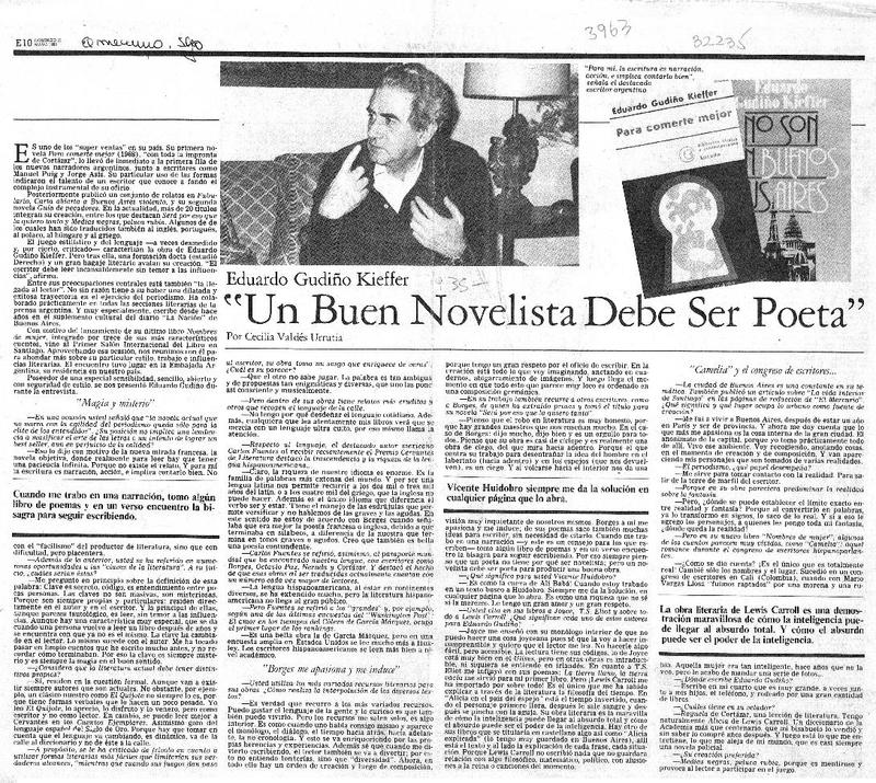 "Un buen novelista debe ser poeta" [entrevista] : [artículo] Cecilia Valdés Urrutia.