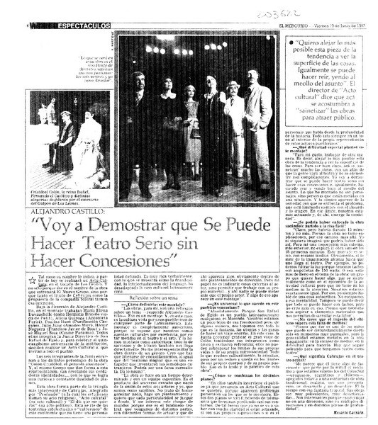 Alejandro Castillo, "Voy a demostrar que se puede hacer teatro serio sin hacer concesiones" [artículo] Rosario Larraín.