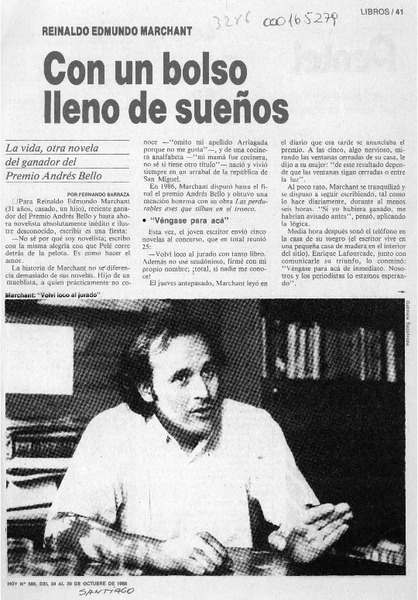 Con un bolso lleno de sueños [artículo] Fernando Barraza.