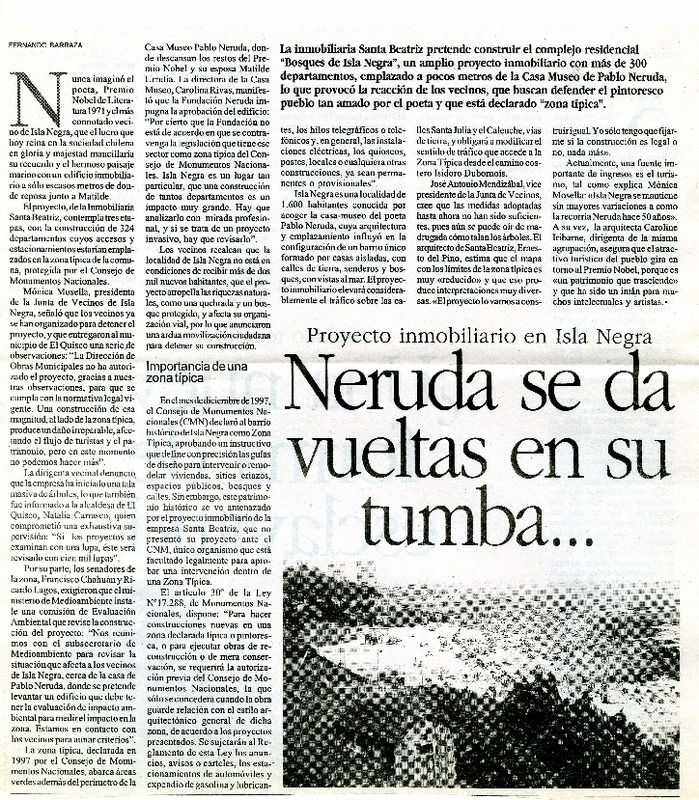 Neruda se da vueltas en su tumba [artículo] Fernando Barraza.