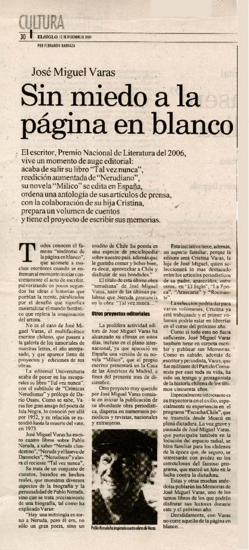 Sin miedo a la página en blanco [artículo] Fernando Barraza.