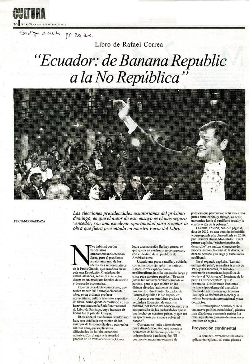 "Ecuador: de Banana Republic a la No República" [artículo] Fernando Barraza.