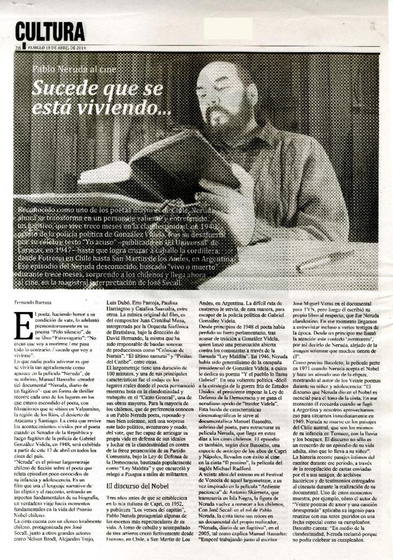 Pablo Neruda al cine. Sucede que se está viviendo... [artículo] Fernando Barraza