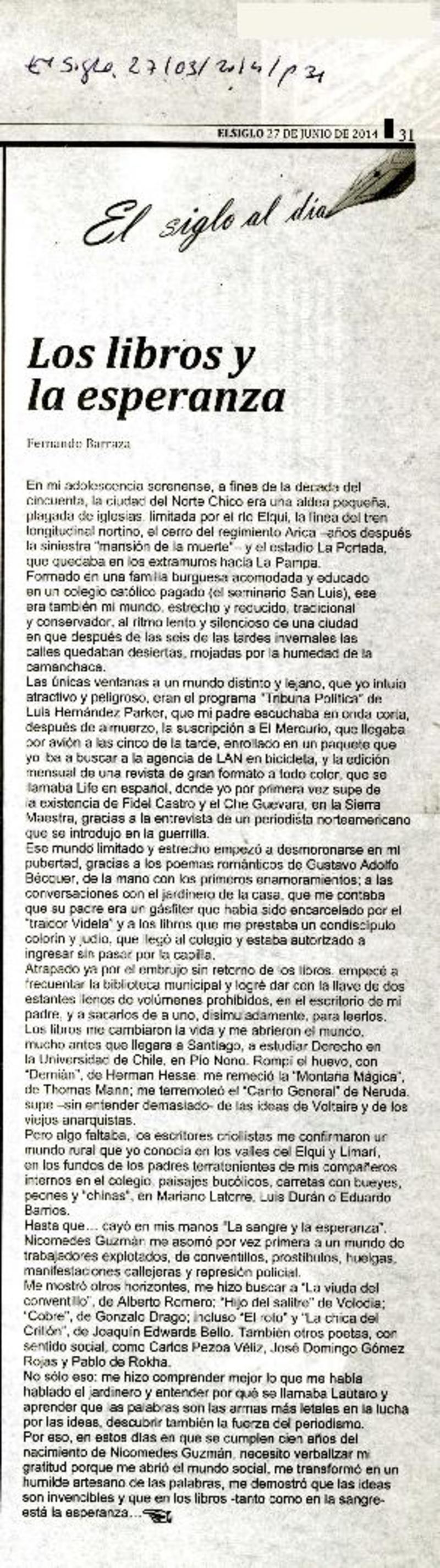 "Esperanzado, casi ingenuamente optimista" [artículo] Fernando Barraza.