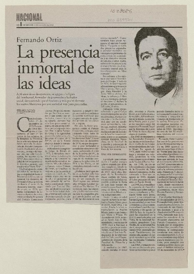 La presencia inmortal de las ideas [artículo] Fernando Barraza.