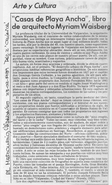 "Casas de Playa Ancha", libro de arquitecto Myriam Waisberg [artículo] Fernando de la Lastra.
