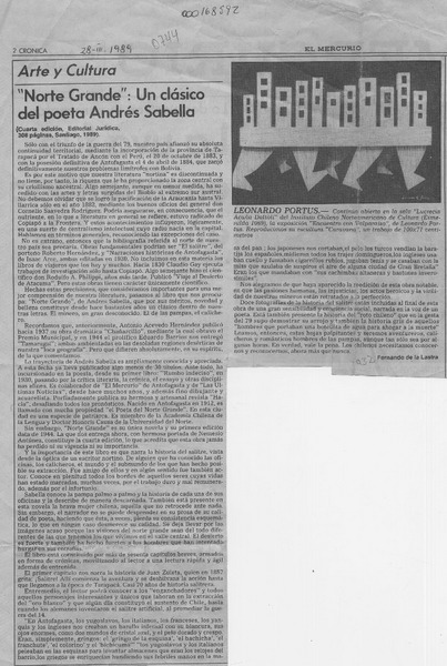 "Norte grande", un clásico del poeta Andrés Sabella [artículo] Fernando de la Lastra.