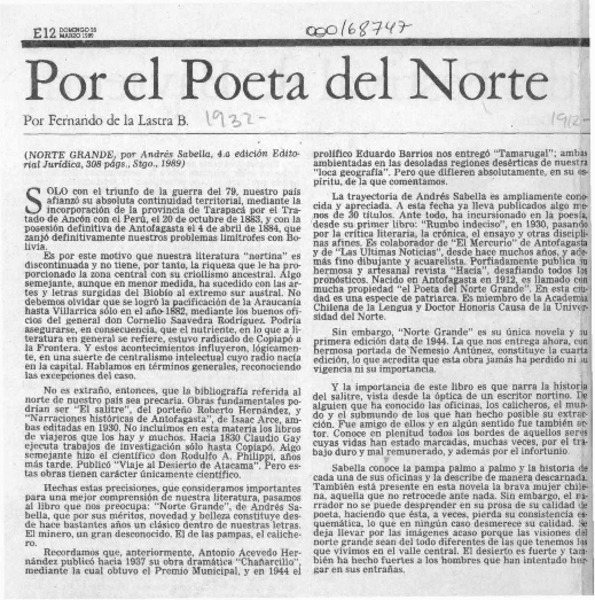 Por el poeta del Norte [artículo] Fernando de la Lastra.